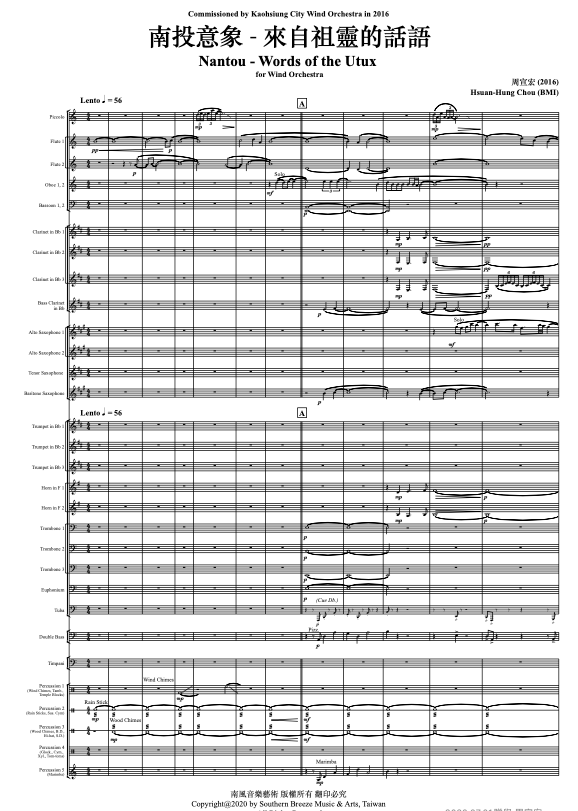 周宣宏:南投意象-來自祖靈的話語 分類:houcc32552020-07-162020-08-01發表於未分類 周宣宏:《南投意象-來自祖靈的話語》Husan-Hung Chou: Nantou-Words of the Utux電子版樂譜:新台幣3200元 / 紙本樂譜:新台幣3600元 分享此文: 分享到 X(在新視窗中開啟) X 分享到 Facebook(在新視窗中開啟) Facebook 喜歡 正在載入... 相關