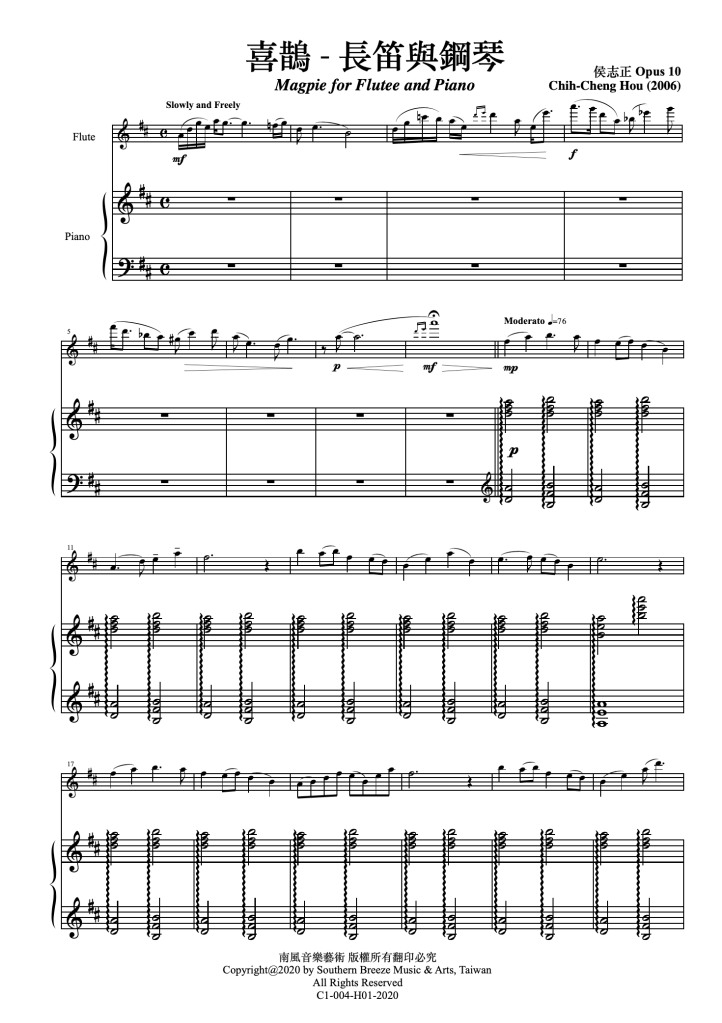 侯志正:喜鵲 – 長笛與鋼琴 分類:houcc32552020-11-252020-11-26發表於未分類 分享此文: 分享到 X(在新視窗中開啟) X 分享到 Facebook(在新視窗中開啟) Facebook 喜歡 正在載入... 相關